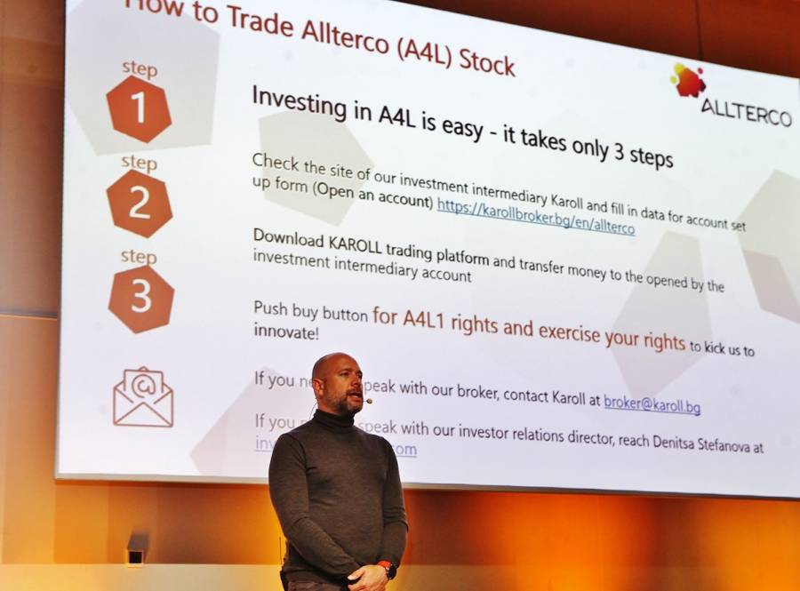 Водещият софтуерен холдинг Алтерко усилва капитала си с нова емисия акции на БФБ и възнамерява дебют на Франкфуртската фондова борса до 2023 година Това бе оповестено на особено събитие в Sofia Event Center, проведено във връзка новата емисия акции. Целта е Алтерко да набере спомагателен капитал, който ще подкрепи компанията по пътя ѝ към основаване на нови умни устройства и IoT решения. Ексклузивната презентация бе предавана онлайн онлайн на 4 езика – български, британски, немски и италиански, при доста огромен интерес.