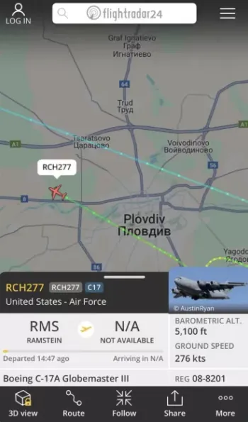 Прелитането му над Пловдив съответствува с възходящото напрежение на интернационалната сцена, откакто нощес към 3 часа локално време се появи информация за американска военна интервенция, ориентирана към иранска нуклеарна инфраструктура.