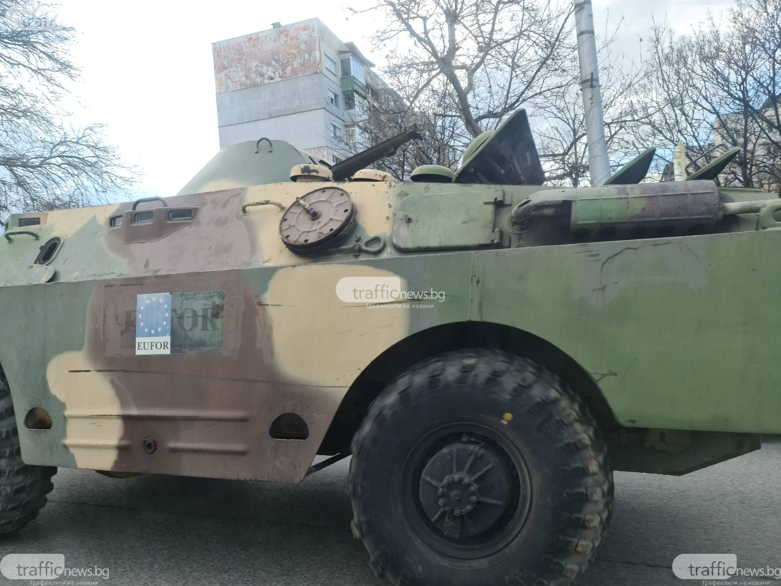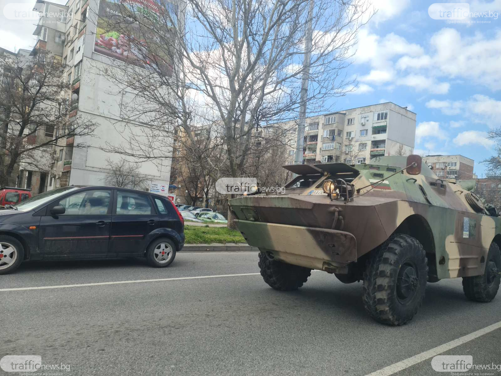Военна техника е видяна да се движи през днешния ден по улиците на Пловдив, алармира четец на TrafficNews. Машината е снимана на бул. " Цариградско шосе " в посока изхода на града. Тя се е движила съпроводена от боен джип.