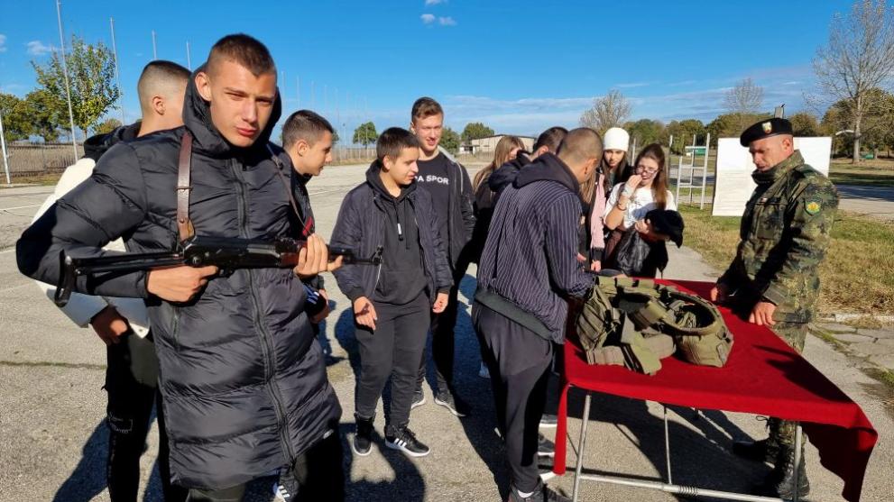 Българска телеграфна агенция До обяд през ревюто минаха ученици от учебното заведение в селото и гимназисти от Хасково , които се срещнаха с изложби инвентар на поделението, което е чест хазаин на учения и бойни стрелби.