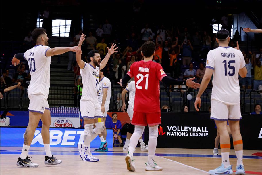 Волейболистите на Иран обърнаха Нидерландия с 3:2 (25:19, 22:25, 21:25, 25:19, 15:9) в мач от Група 6 на Лигата на нациите, който се игра пред едвам 300 фенове в “Арена Белград ” в Сърбия.