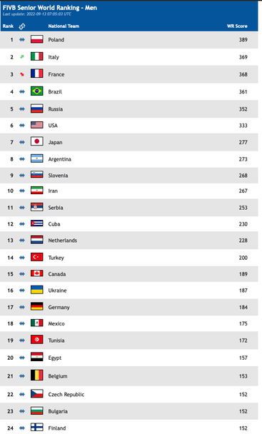 Един ден след края на Мондиал 2022 ранглистата бе обновена и България се смъкна с една позиция до 23-о място с актив от 152 точки.