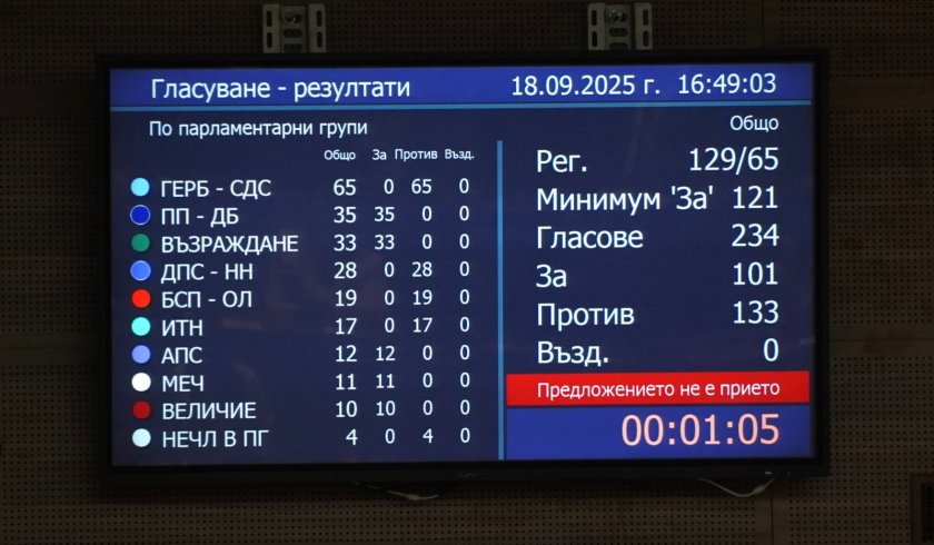 Вотът беше подсилен от 101 депутати, срещу него бяха 133 народни представители, нямаше въздържали се