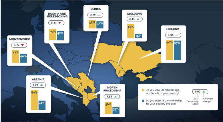 Цитирани са и данни от няколко проучвания през миналата година за страните със статут на претенденти за Европейски Съюз (Албания, Босна и Херцеговина, Сърбия, Черна гора, Северна Македония, Молдова, Украйна) въз основата на които: