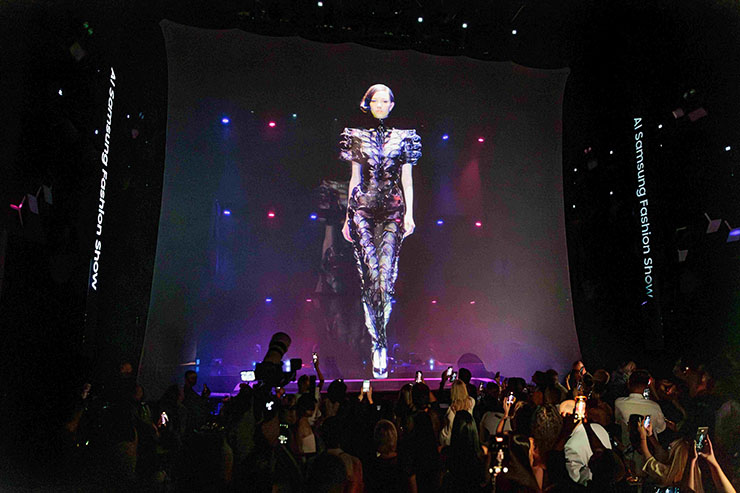 Екстравагантни костюми, като че ли излезли от футуристичен филм, дрехи – композиция от финес и деловитост, приказност от палитри, текстури и форми – стилната сбирка на Samsung изненадва с еклектично многообразие и многостранност. Всеки може да откри модел, в който да припознае своя жанр, своята приказка или своята фантазия. Зад сбирката стои екип от висококвалифицирани експерти в областта на изкуствения разсъдък и дизайна.Предизвикателството се корени в това да основат фешън линия, която във всеки подробност и цвят, наподобява съвършено както на екрана на компютър, по този начин и в идващия стадий – при трансформацията в осемметрови холограмни изображения.