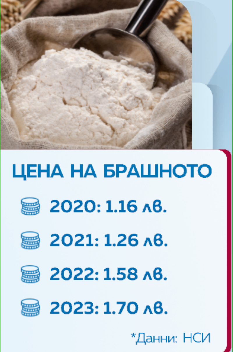 Припомняме, че нулевият % влезе в действие през 2020 година по време на Коронавирус рецесията, с цел да компенсира сектора и да не докара до скок на цените за потребителите. По данните на Националния статистически институт обаче можем да забележим, че годишно брашното нараства приблизително с 10-20 стотинки за кг. Движението при хляба даже е по-динамично - от 10 стотинки до цели 50 през 2022 година.