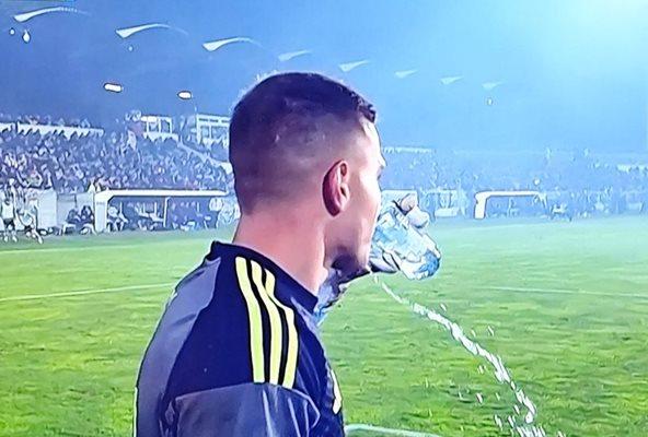 Вратарят отпива и плюе ритуално вода