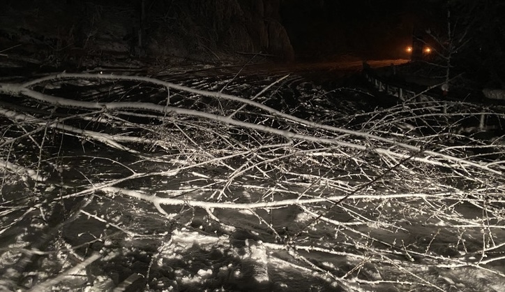Заради изобилния снеговалеж по трасето има рискови заснежени места, както и паднали клони от дървета. Има и закъсали камиони.