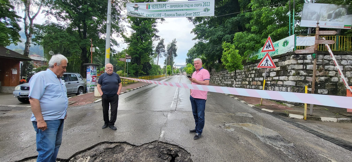 Временно е затворен основният път в град Чепеларе в сектора от ДСК до Районен съд - гр. Чепеларе. Проливният дъжд и градушка предизвикаха вреда на пътя, която все още се изследва. На терен са специалисти от АПИ, кметът на община Чепеларе Боран Хаджиев, инж. Стоян Кузмов - зам.- кмет на община Чепеларе, специалисти от общинска администрация, ВиК гр. Чепеларе и чиновници на районно управление (на МВР) Чепеларе.