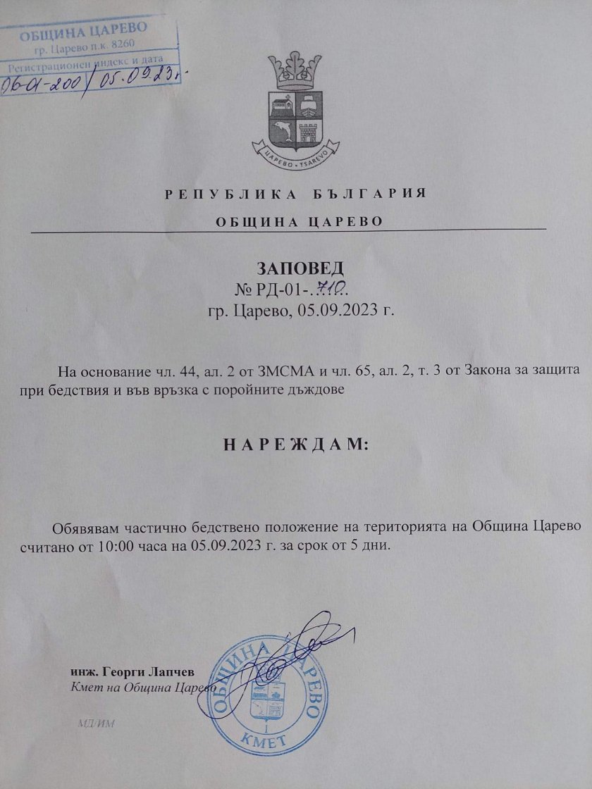 Поради тази причина кметът издаде заповед за отчасти бедствено състояние, датираща от през днешния ден и важаща за идващите пет дни.