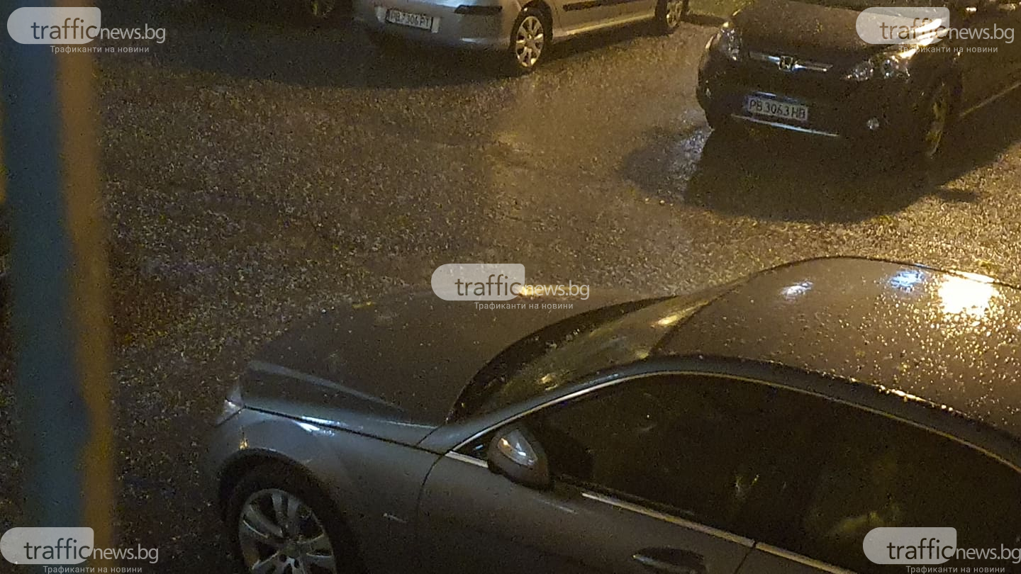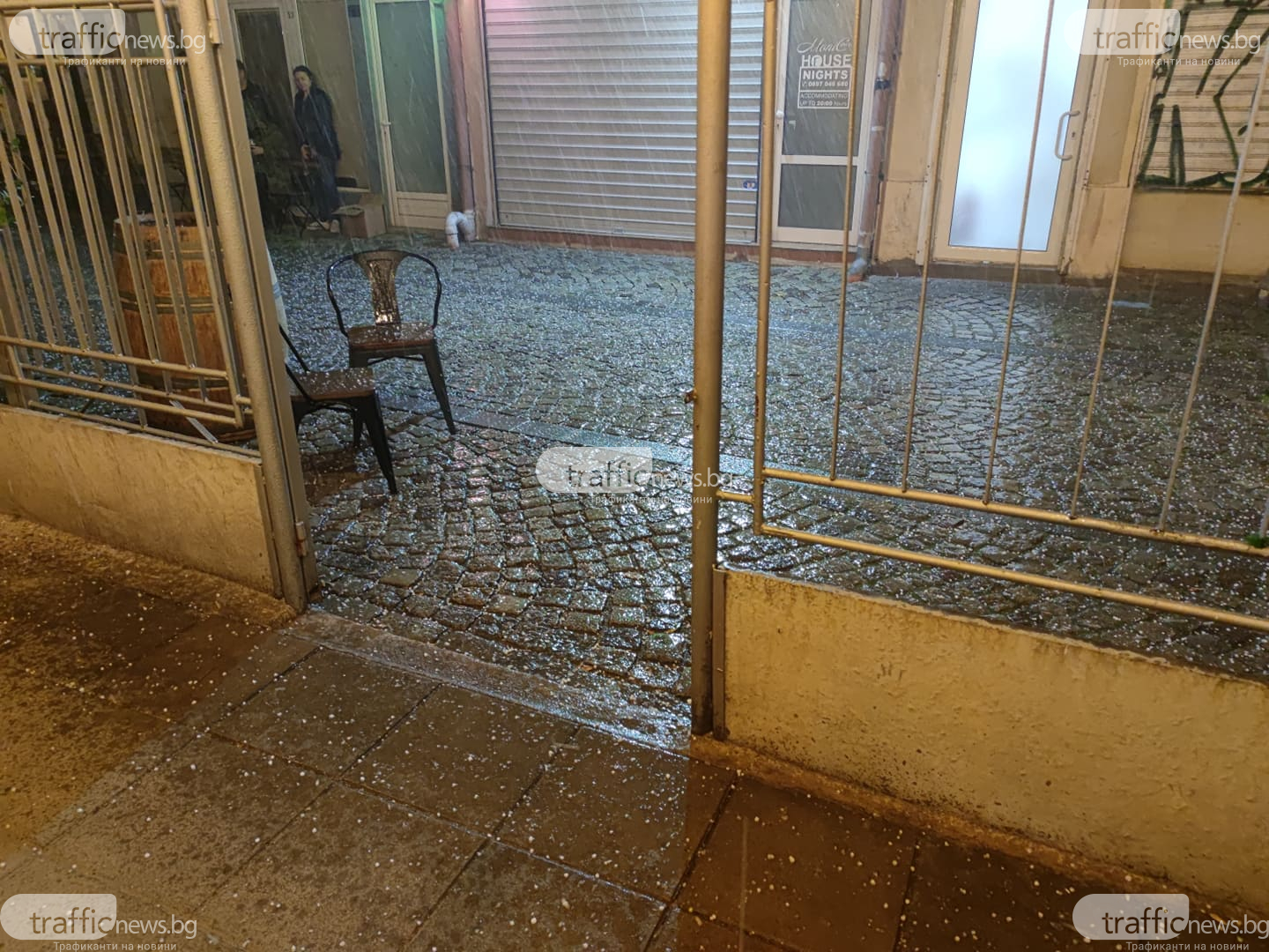 Преди минути се изсипа и мощен дъжд съпроводен с градушка, малко по-голяма от грахово зърно.