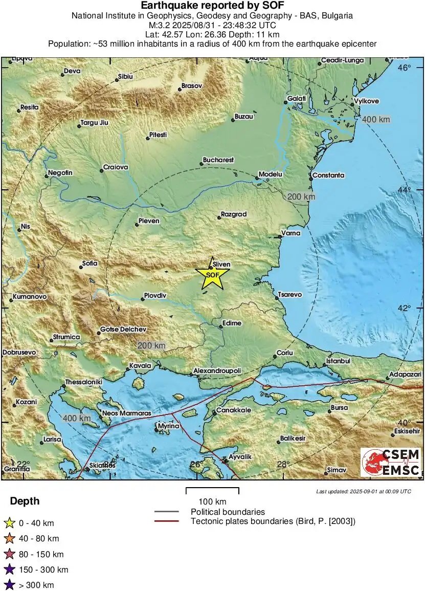 По данни на Националния сеизмологичен център към Българската академия на науките трусът е регистриран в 02 ч и 48 минути на дълбочина 12 км.