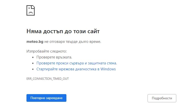 Сайтът на организацията, която публично доставя страната с метеорологична информация, не се отваря от два дни. Кратки известия за времето Национален институт по метеорология и хидрология разгласява в профила си във Facebook.