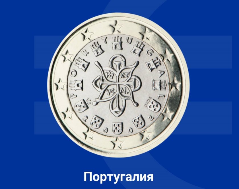 На монетата от 1 евро са показани седем замъка и пет герба на Португалия, оградени от 12-те звезди на Европейския съюз. В средата е ситуиран кралският щемпел от 1144 година