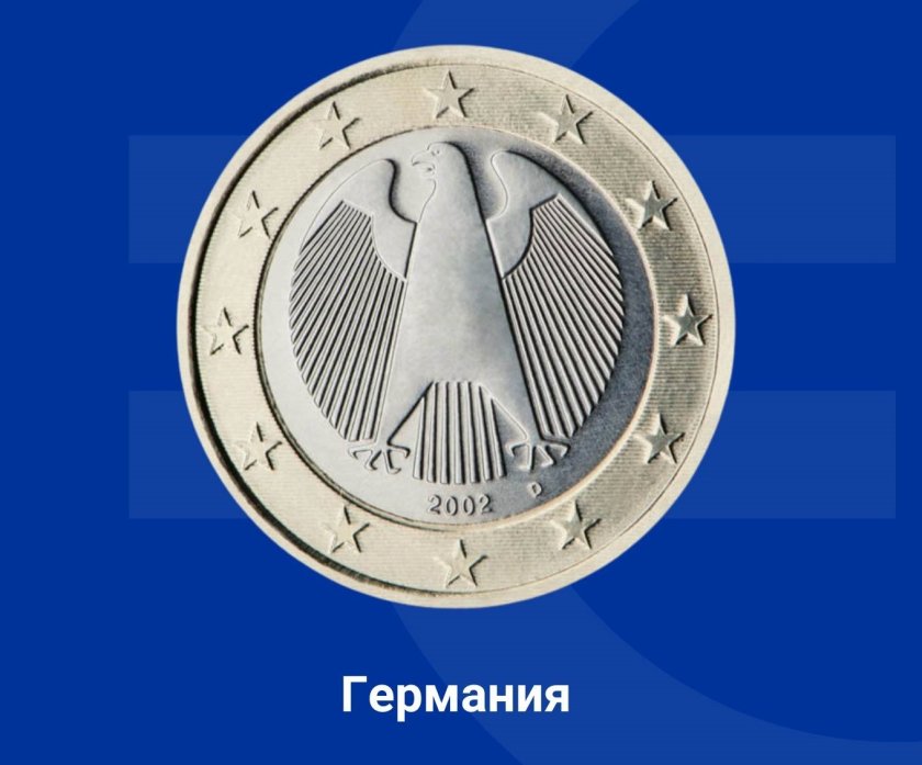 На монетата от 1 евро е изобразен орел - обичаен знак на немския суверенитет, ограден от звездите на Европа. Дизайнът е основан от Хайнц и Снежана Русева-Хойер. Снежана е българка, родом от село Крушари, Добричко.