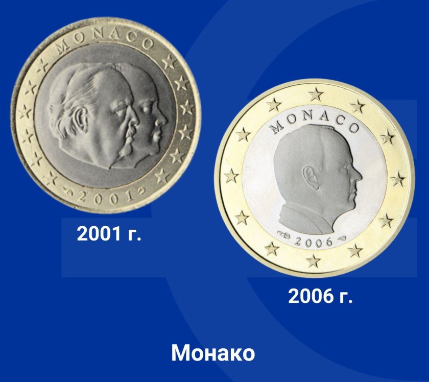 Две серии евромонети са в обращение в Монако . На монетата от 1 евро в първата серия са изобразени профилите на принц Рение III и тогавашния престолонаследник принц Албер II.