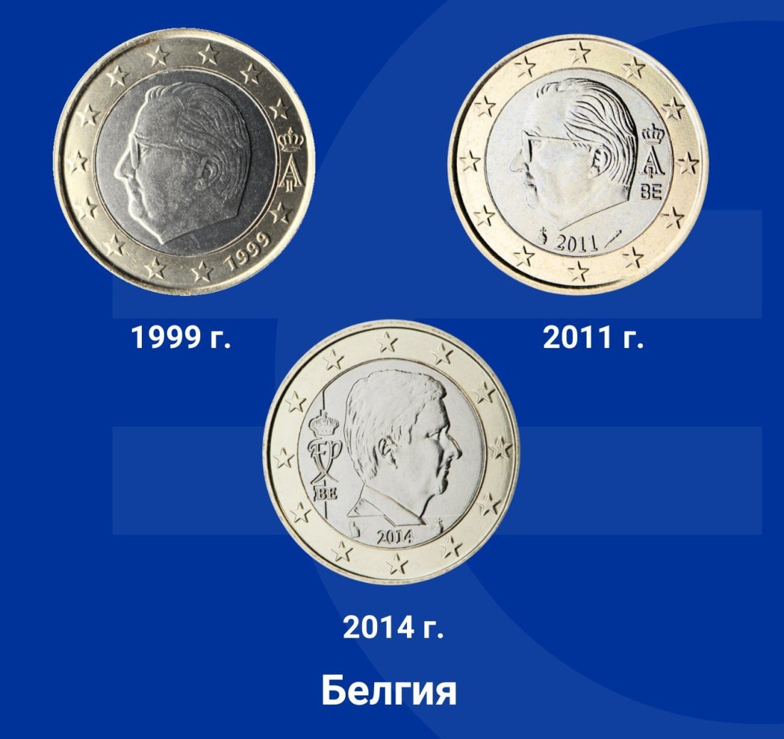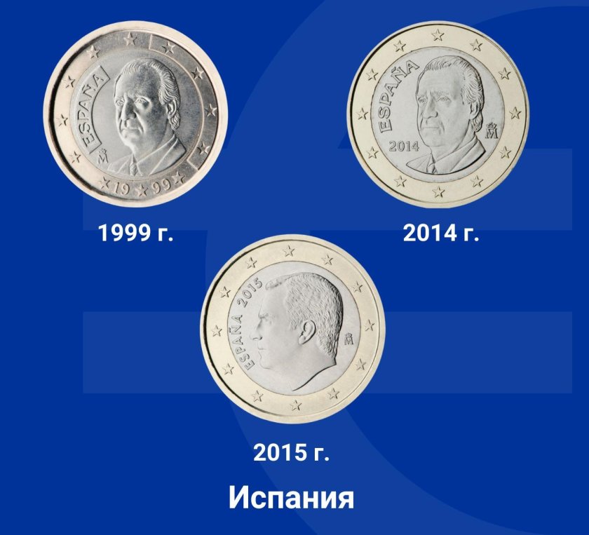 На монетите от 1 евро в първата и втората серия е изобразен портрет на крал Хуан Карлос I де Бурбон.
