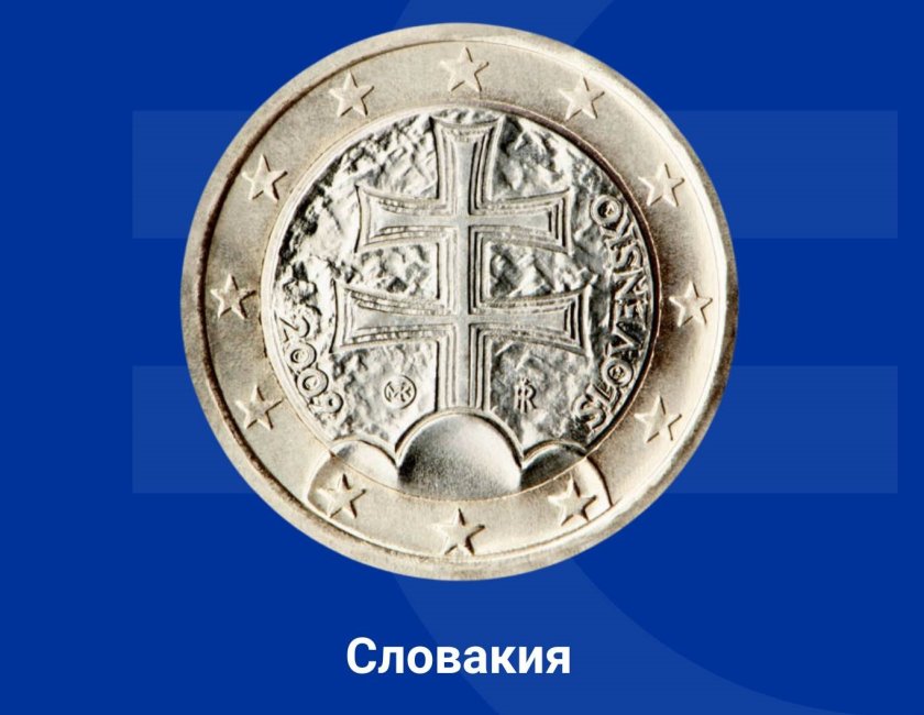 На монетата от 1 евро е показан двоен кръст, ситуиран върху три хълма, както е изобразен и на държавния герб на страната. Кръстът символизира християнската религия, донесена в страната от светите братя Кирил и Методий, а хълмовете - три планински вериги: Татри, Фатра и Матра (в днешна Унгария).