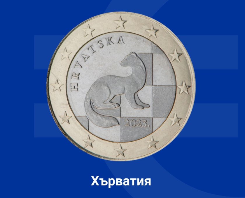 На монетата от 1 евро, проектирана от Ягор Шунде, Давид Чемелич и Фран Зекан, е изобразена златка. Златката е тип дребен бозайник, чието име носи остарялата парична единица на страната - куната. Дизайнът включва годината на издаване и надписа " HRVATSKA ".