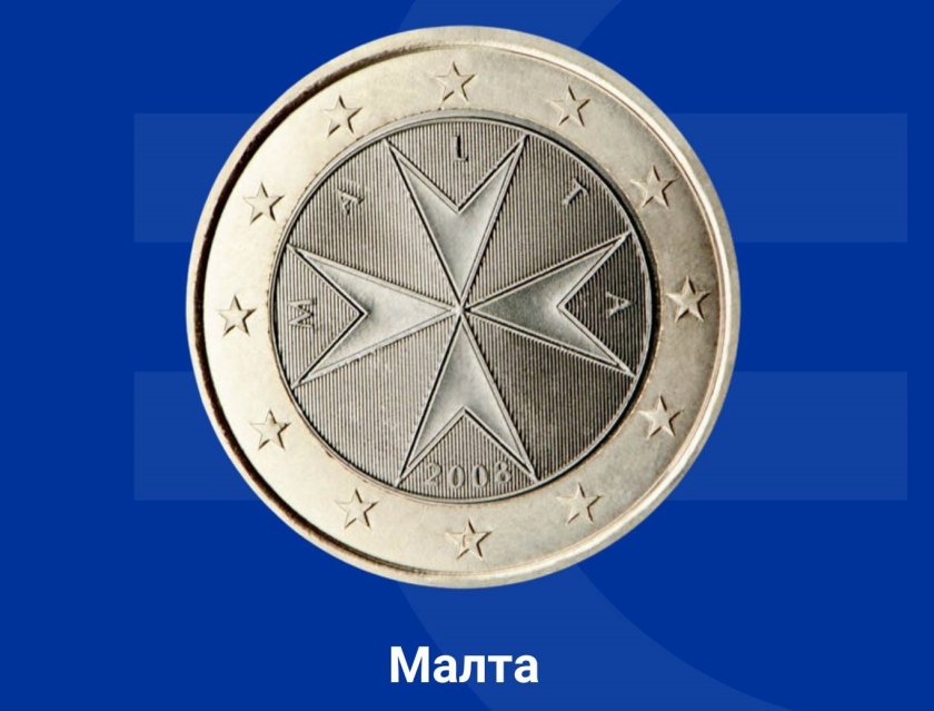 На монетите от 1 евро е изобразена емблемата на Суверенния медал на Малта (известен и като " Орден на хоспиталиерите на Свети Йоан " ).