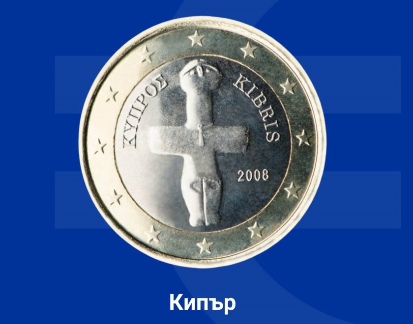 На монетата от 1 евро е изобразен кръстовиден кумир от епохата на халколита (каменно-медната епоха), датиращ от 3000 година пр.н.е. Този характерен монумент на праисторическото изкуство на острова отразява мястото на Кипър в сърцето на цивилизацията и античността.