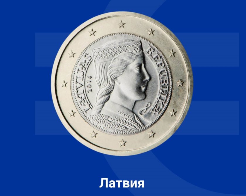 Националната страна на монетата от 1 евро в Латвия съставлява момиче в национална носия. Изображението е употребявано в началото върху сребърната монета от 5 лата през 1929 година