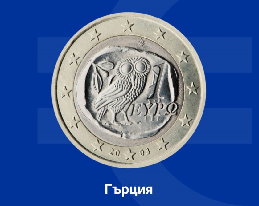 На монетата от 1 евро е показана сова - претекстът е взет от антична атинска монета от 4 драхми (V век пр.н.е.).