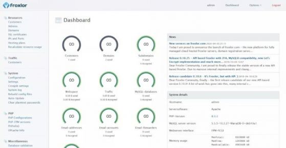 Това е още една известна безвъзмездна опция с отворен код на cPanel. Всъщност Froxlor е съвсем толкоз мощен, колкото cPanel, само че е наличен единствено за дистрибуциите на Debian и Gentoo Linux.