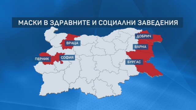 Заради растежа на нови случаи от през днешния ден маските в лечебните и в обществените заведения още веднъж стават наложителни в шест области с висока заболеваемост - София, Варна, Бургас, Добрич, Враца и Перник.