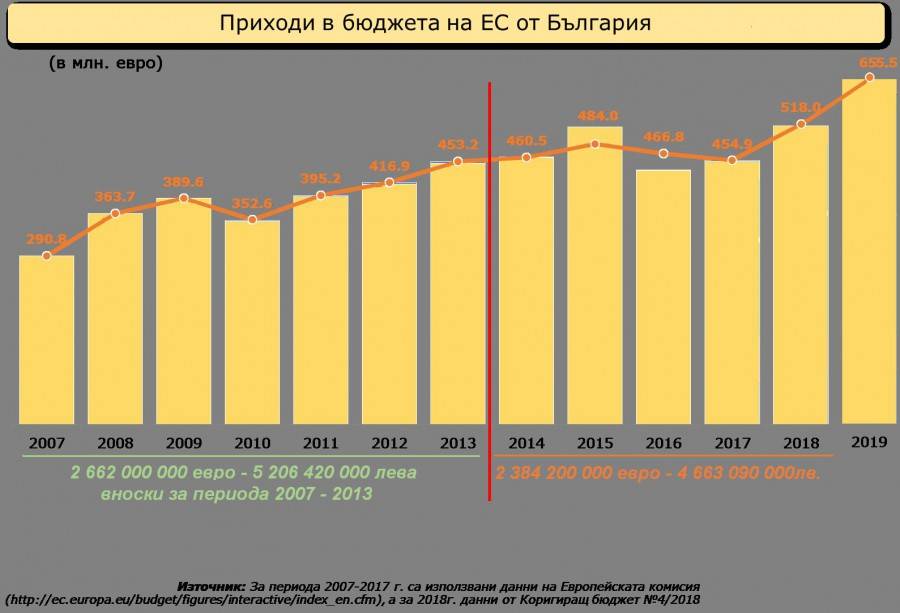Иначе казано: ние сме чист донор на европейския бюджет с близо 500 милиона евро за интервала 2014 до 2018 година в това число.