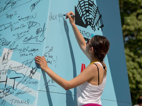 Всеки финалист остави своя подпис с обръщение върху старт-финалната арка в центъра на града