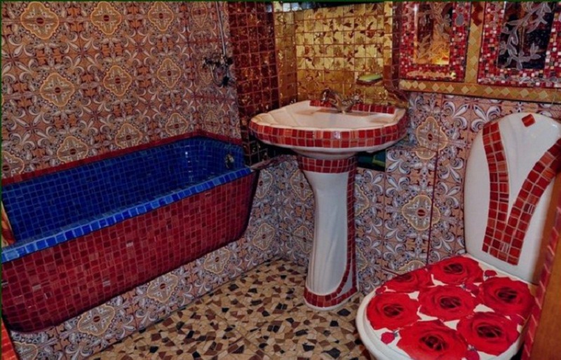 2. Явно замисълът е бил да има нещо ориенталско. Но, нещо е пристигнало допълнително, или пък плочките не са стигнали. При всички случаи от резултата може да ни заболи глава.