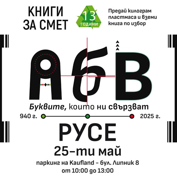 На 25 май 2025 година (неделя), от 10:00 до 13:00 часа, Русе ще бъде хазаин на една от най-популярните екологични и просветителни начинания в България – „ Книги за боклук “. Събитието ще се организира на паркинга на хипермаркет Kaufland, ситуиран на бул. „ Липник “ №8.