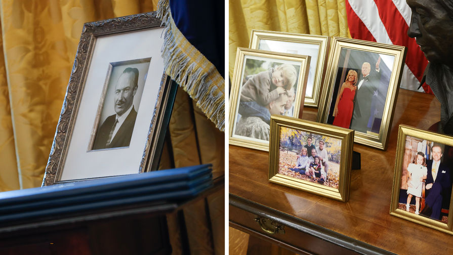 Байдън замени портретите на американски президенти, окачени по стените, и размени пейзажите от фондовете на Белия дом. Разбира се, той отстрани фоторамките с децата и родителите на Тръмп и сложи своите на тяхно място.