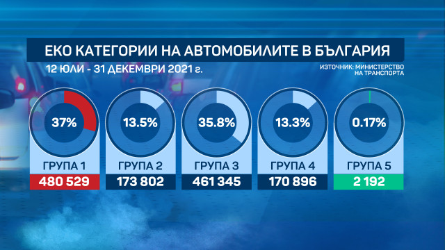В най-високия клас, където са електрическите коли, попадат едвам 2192 автомобила от към този момент категоризираните към 1,4 млн.