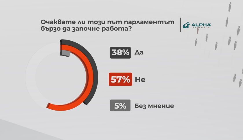Не са оптимистични и прогнозите за работата на Народното събрание - откакто предходната година депутатите три дни си избираха ръководител, в този момент 57% от българите считат, че и този парламент няма да стартира работа бързо. 38% са на противоположното мнение, а 3% не са дали отговор.
