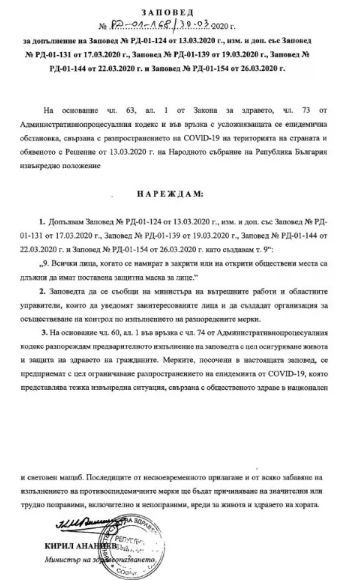 Всички лица са длъжни да носят защитна маска, когато се намират в закрити или на открити публични места.