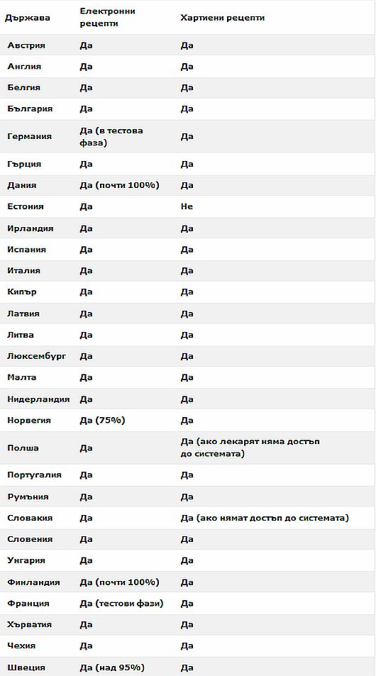 Всички страни в Европа, с едно изключение - Естония, употребяват по едно и също време хартиена и електронна рецепта. Това сподели инспекция на Българския лекарски съюз, оповестиха от пресцентъра на организацията.