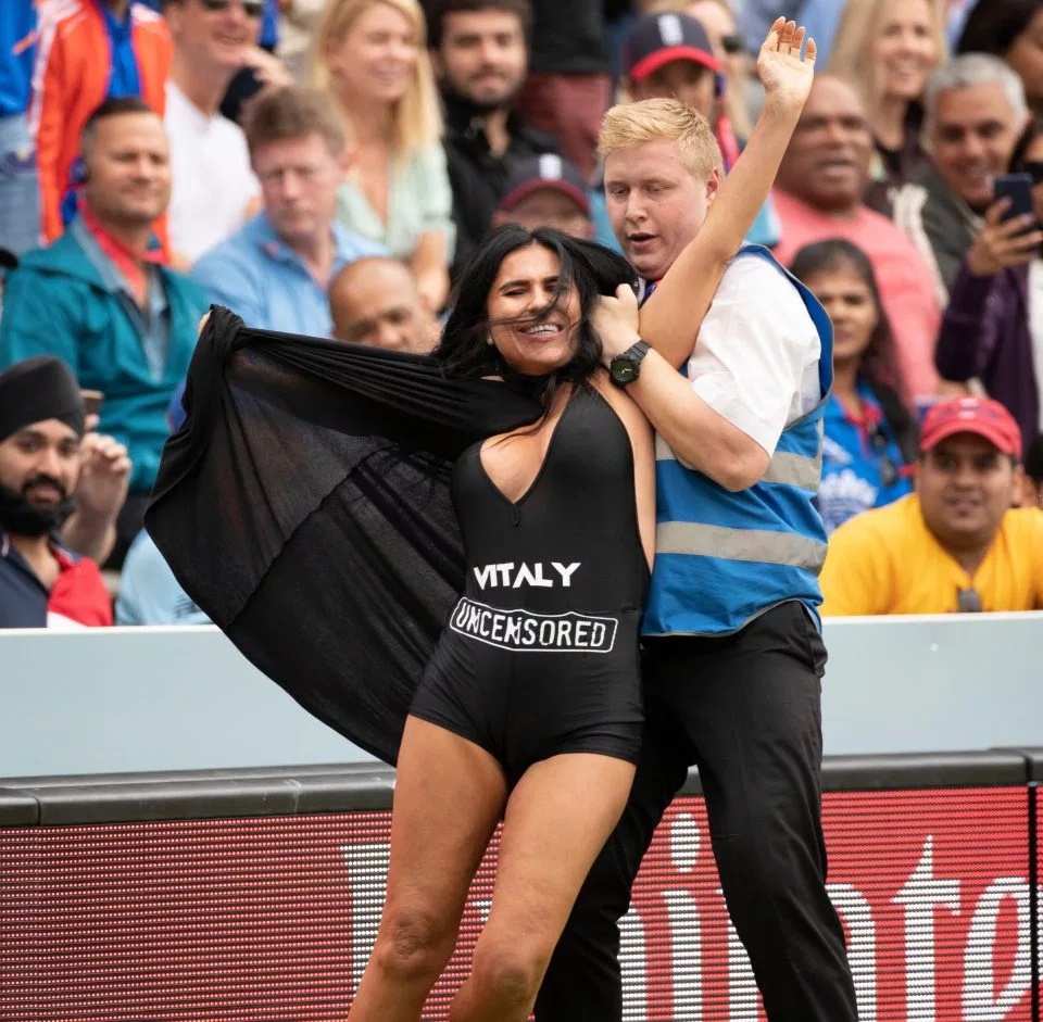 Майката на Витали - Елена нахлу на терена на дуела сред Англия и Нова Зеландия, като на облеклата й, които бяха много транспарантни и гърдите й се виждаха, още веднъж бе изписано името на порно уеб страницата на сина й. Вижте тази обява в Instagram.