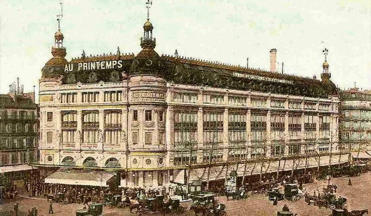 Всичко стартира с волята и шанса на Жул Жалузо, наследник на нотариус, предопредeлен от фамилията си за военна кариера, само че загърбил бащиния съвет и отдал се на своята бизнес фантазия. В ранните си юношески години той е чиновник на първия огромен френски повсеместен магазин „ Бон марше “. Там среща бъдещата си брачна половинка, елегантна дама, постоянна клиентка на магазина.След сватбата им Жалузо получава голям късмет: зестрата на жена му от богато семейство му разрешава да сбъдне фантазията си – да открие личен повсеместен магазин, който да притегли богатата парижка клиентела. Рискува, като избира непопулярно място, покрай гарата „ Сен Лазар “. По това време огромните булеварди и Операта Гарние към момента не съществуват, само че може би Жалузо има комерсиалния усет или информацията за идните грандиозни градоустройствени планове под егидата на общината и персонално на барон Осман. През 1865 година 31-годишният бизнесмен взема решение да отвори Printemps (на фр. пролет) с мотото „ През пролетта всичко е ново, свежо и красиво “. Първата версия на универсалния магазин е с просторни витрини и прилича огромен затрупан пазар с покрив, поддържан от елегантни колони. На едно място човек може да купи разнообразни артикули – подготвени облекла, платове, чорапи, ръкавици и даже мебели. Като част от символиката за обновяване всяка година в първия ден на пролетта клиентките получават букет теменужки.