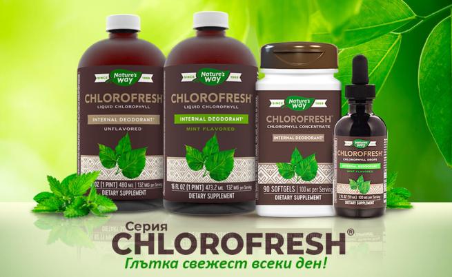 Хлорофреш® е хранителна добавка в течен тип или на капсули, съдържаща растителна формула за детоксикация и унищожаване на неприятни телесни миризми. В състава ѝ има хлорофилин (производно на хлорофила) под формата на натриево-меден хлорофилинов комплекс, получен от листата на бяла черница (Morus alba L.)