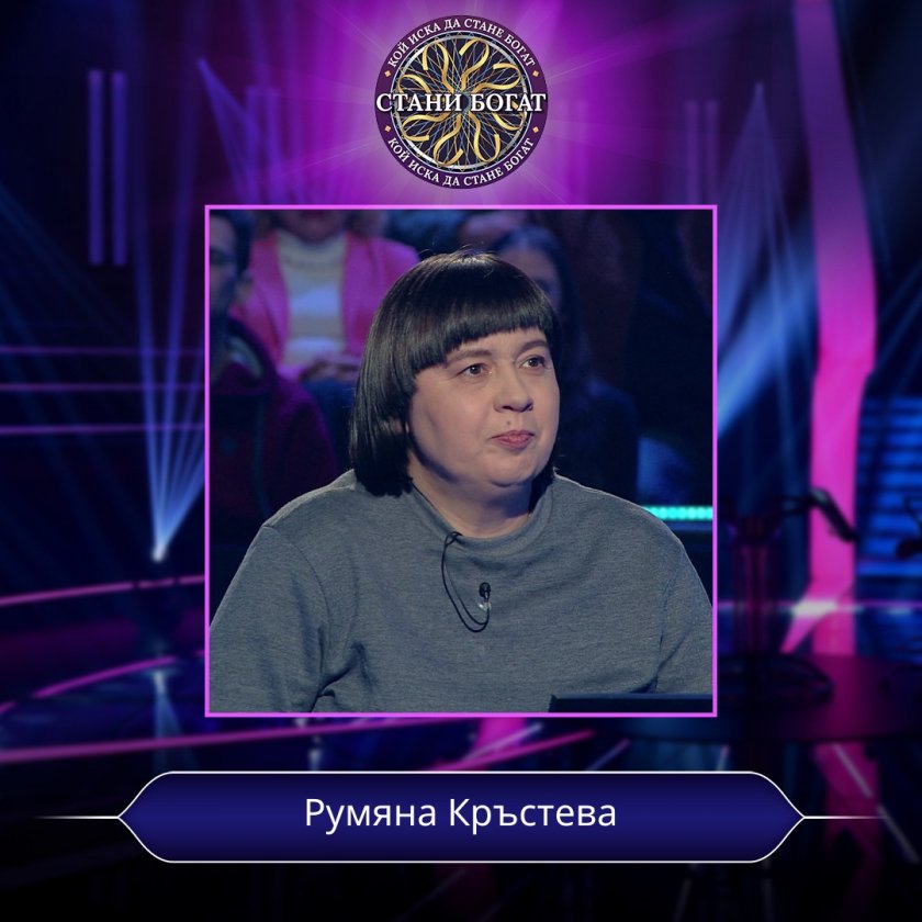 Още първоначално стана ясно, че Румяна знае няколко езика, написа лирика и върви за риба, само че пък самата тя призна, че историята не й е най-силната страна. Потвърждението пристигна бързо - падна й се въпрос, поради който тя изгърмя всичките си три жокера, а сумата към момента бе от дребните.