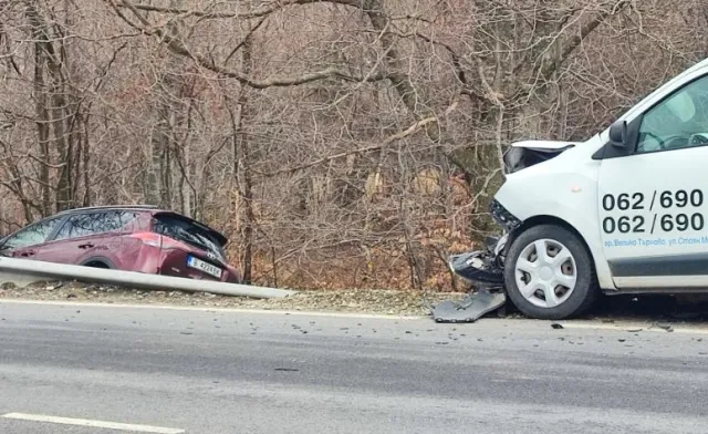 Ударили са се 4 автомобила, като единият е изхвърчал отвън пътя. Има потърпевш, който е превозен до болничното заведение в Разлог с болки в гърдите.
