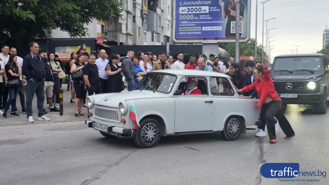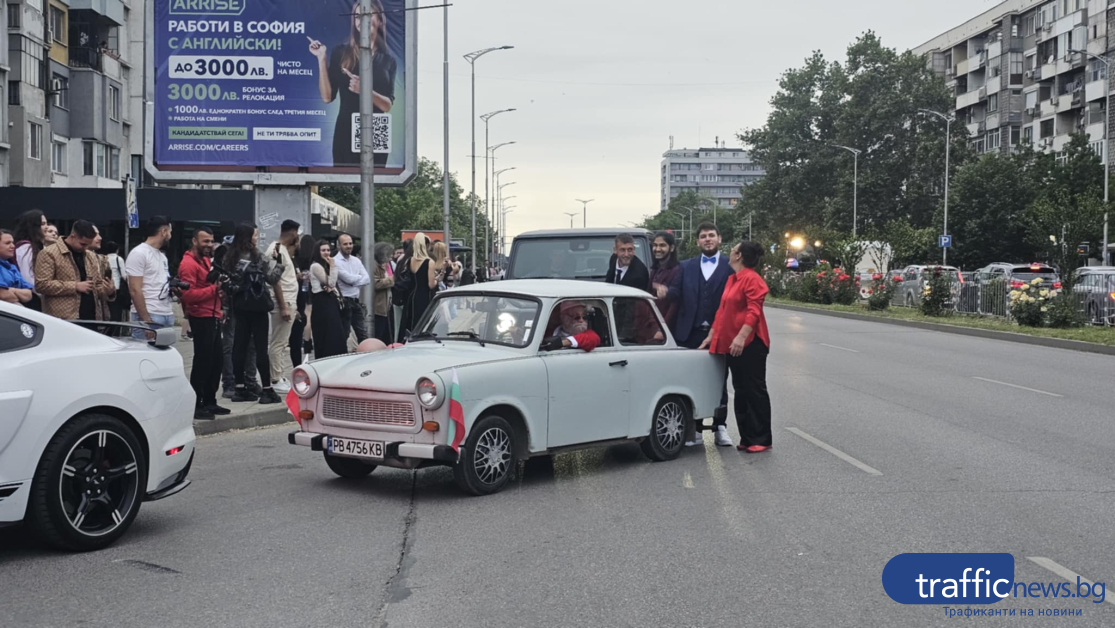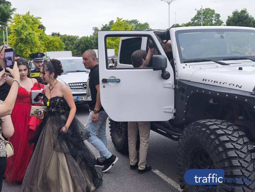 Не липсваха и етноритми. Редица зрелостници бяха съпровадени от тарамбуки и тъпани. Погледите на зяпачите прикова и Цветелин от Автото, който се появи на бала с ТАЗ 69.