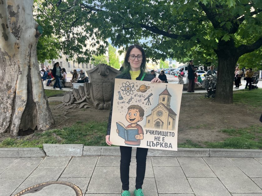" Излизаме на митинг, с цел да защитим светския дух на българското учебно заведение - мястото, където всяко дете би трябвало да получи познание без напън и разделяне. Против сме въвеждането на наложително религиозно образование, което жестоко нарушава конституционния принцип за обособяване на религията от страната и слага под въпрос свободата на мисълта и избор ", обявиха участниците в митинга.