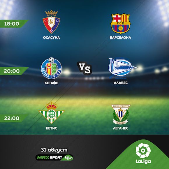 По MAX Sport 4 почитателите на La Liga ще могат да проследят директно дуелите от третия кръг в шампионата. По-любопитните мачове са Осасуна против Барселона (31 август от 18:00 часа) и Виляреал против Реал Мадрид (1 септември от 22:00 часа).