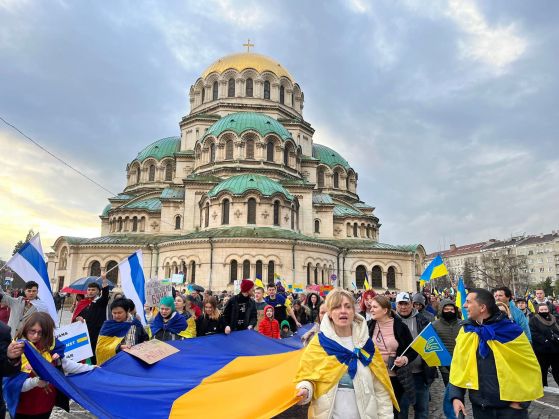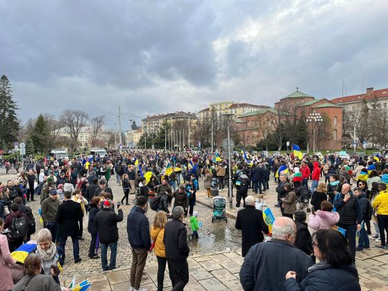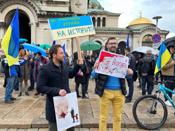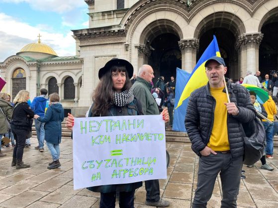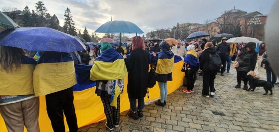Организаторите на днешната проява са жителите, които предизвикаха. Те настояват, че България не може да остане неутрална, тъй като по този начин се трансформира в съизвършител на агресора.