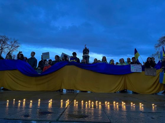 20:43 ч. - Протестиращите резервираха минута безмълвие в памет на жертвите в Украйна.