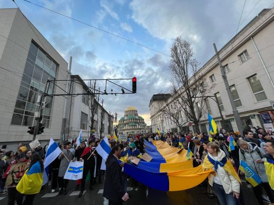 18:56 ч. - Депутатът от Българска социалистическа партия Явор Божанков също се присъдени към шествието. Позицията на левицата обаче е да не изпращаме военна помощ на Украйна. Общински съветници от Българска социалистическа партия през днешния ден гласоподаваха и срещу алея пред съветското посолство да се споделя " Героите на Украйна ".