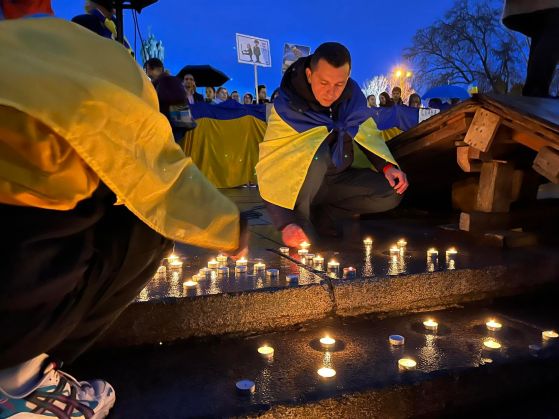 20:11 ч. - " Добре пристигнали в България. Надяваме се да се чувствате като вкъщи си. С нацистки принадлежности една самостоятелна страна се " денацифицира ". Ние не сме неутрални " - с тези думи уредниците на шествието се обърнаха към украинските жители. Част от хората възпламениха свещи в памет на починалите в Украйна пред Паметника на руската войска.